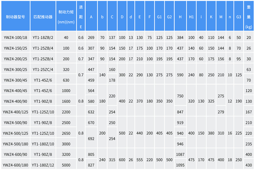 注:YWZ4系列的制動器匹配Ed推動器,替代原YWZ4B系列;