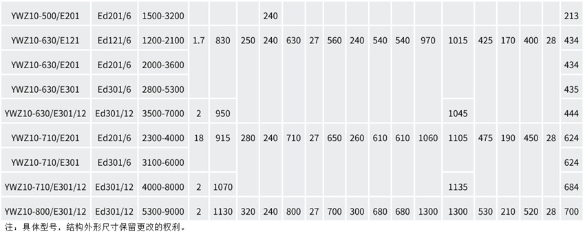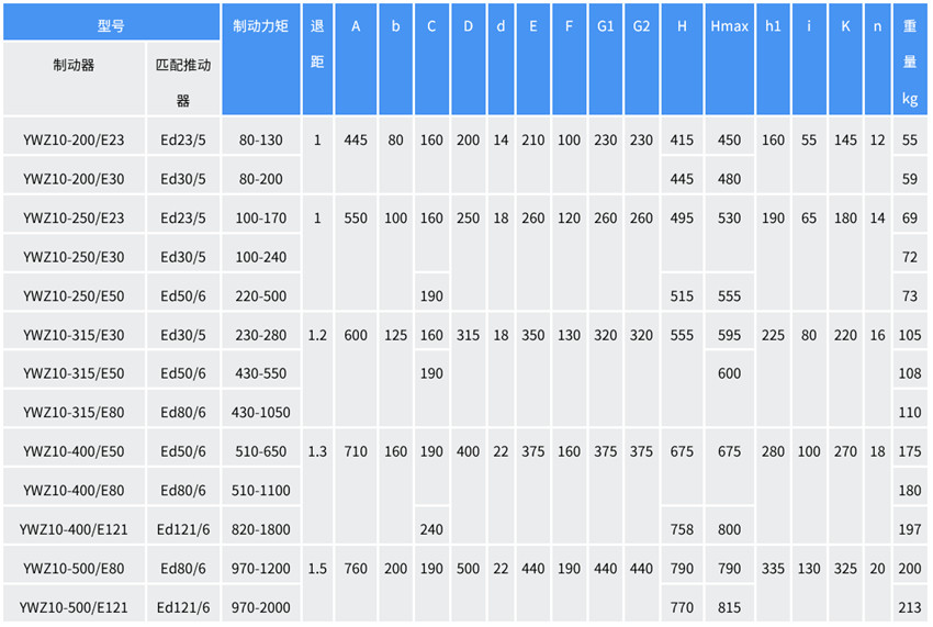 YWZ10系列電力液壓鼓式制動器的安裝尺寸和制動力矩參數符合GB6333-86標準,其技術要求符合JB/T6406-2006標準。